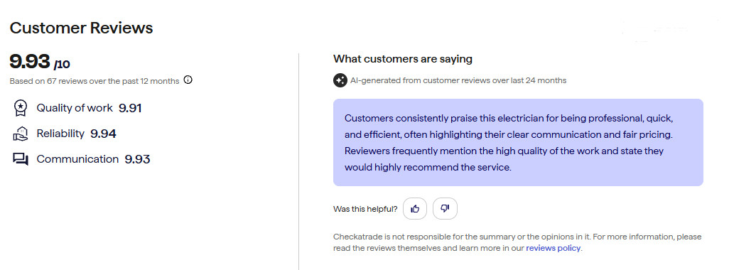 What customers are saying on Checkatrade